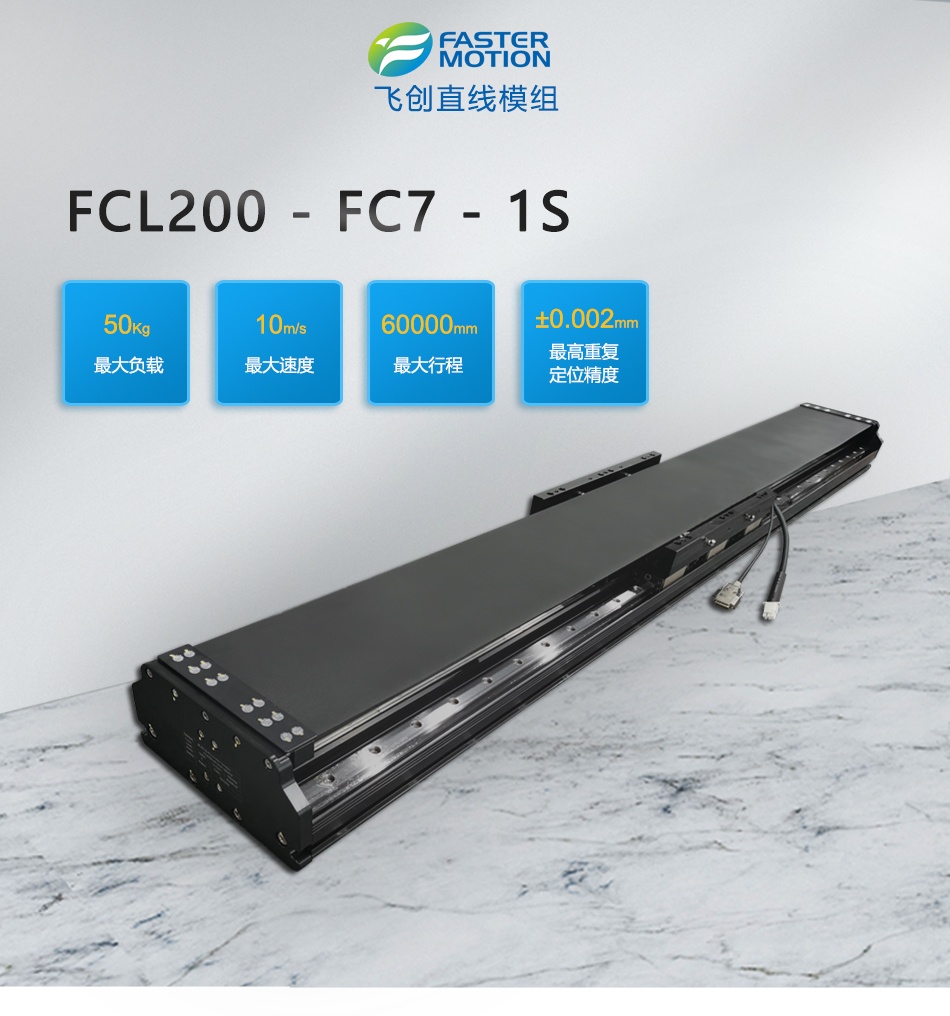 Faster Motion 飞创FCL系列直线电机模组采用高性能(Parker、Yaskawa、Mitsubishi)等高端品牌直线电机集成了传感器,高性能光栅或磁栅编码器,可直接实现直线运动。具有方案安全、其低摩擦、寿命长、易保养、维护成本低等优势,高性能的直线位移传感器确保行走路径精确、重复性能优越。