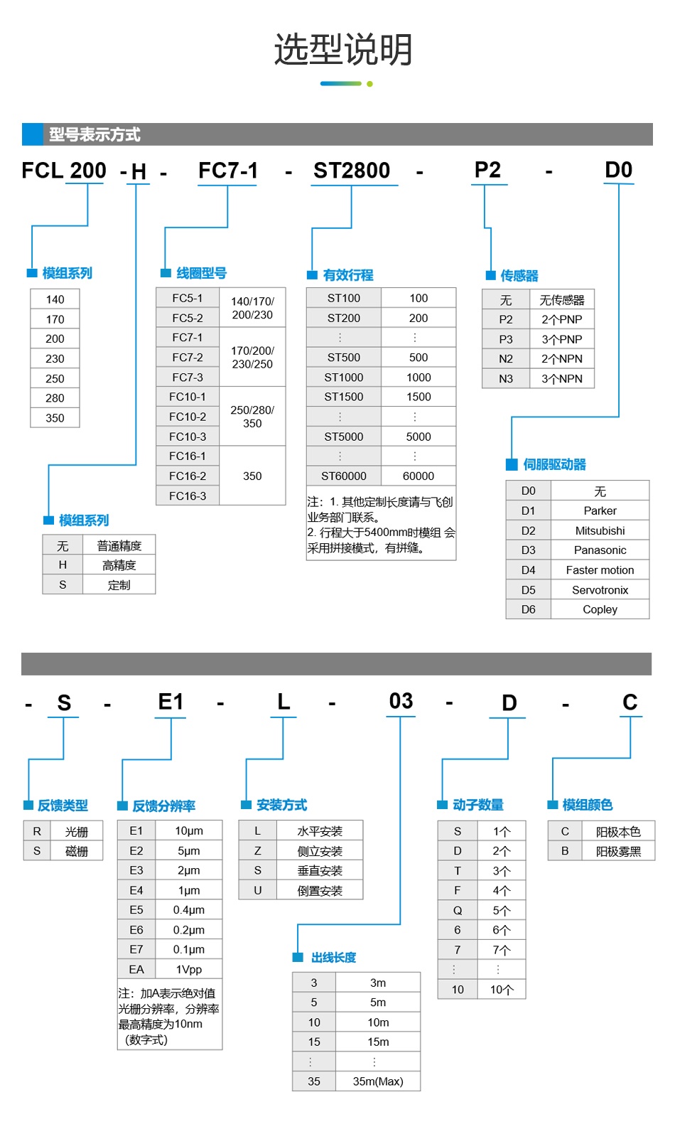 Faster Motion 飞创FCL系列直线电机模组采用高性能(Parker、Yaskawa、Mitsubishi)等高端品牌直线电机集成了传感器,高性能光栅或磁栅编码器,可直接实现直线运动。具有方案安全、其低摩擦、寿命长、易保养、维护成本低等优势,高性能的直线位移传感器确保行走路径精确、重复性能优越。