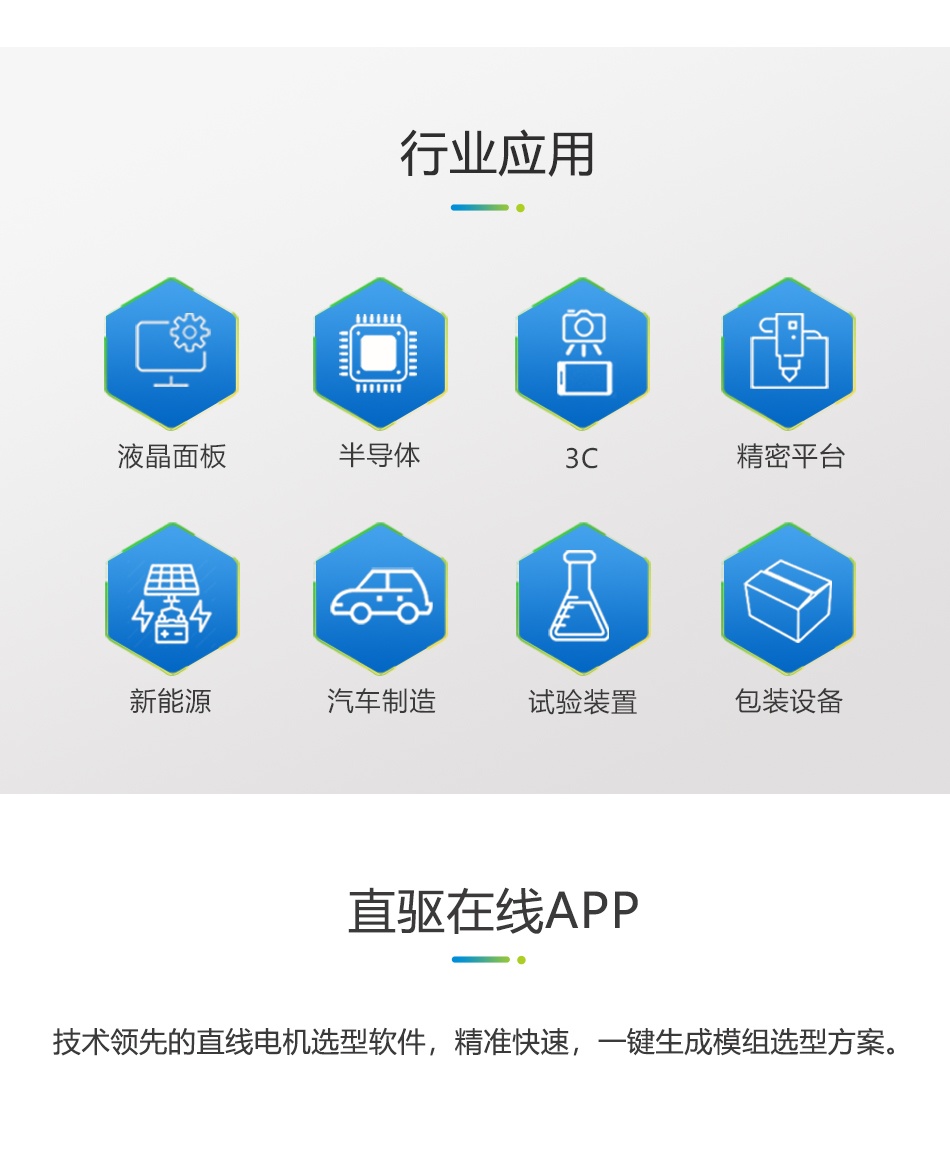 飞创直线电机模组具有超长行程60000mm,最大运行速度10m/s,超高精度±0.002mm,超重负载500Kg,运行平稳等五大技术优势。广泛应用于液晶面板,半导体,新能源,轨道交通实验平台,3C,精密加工,实验装置,包装搬运等领域。