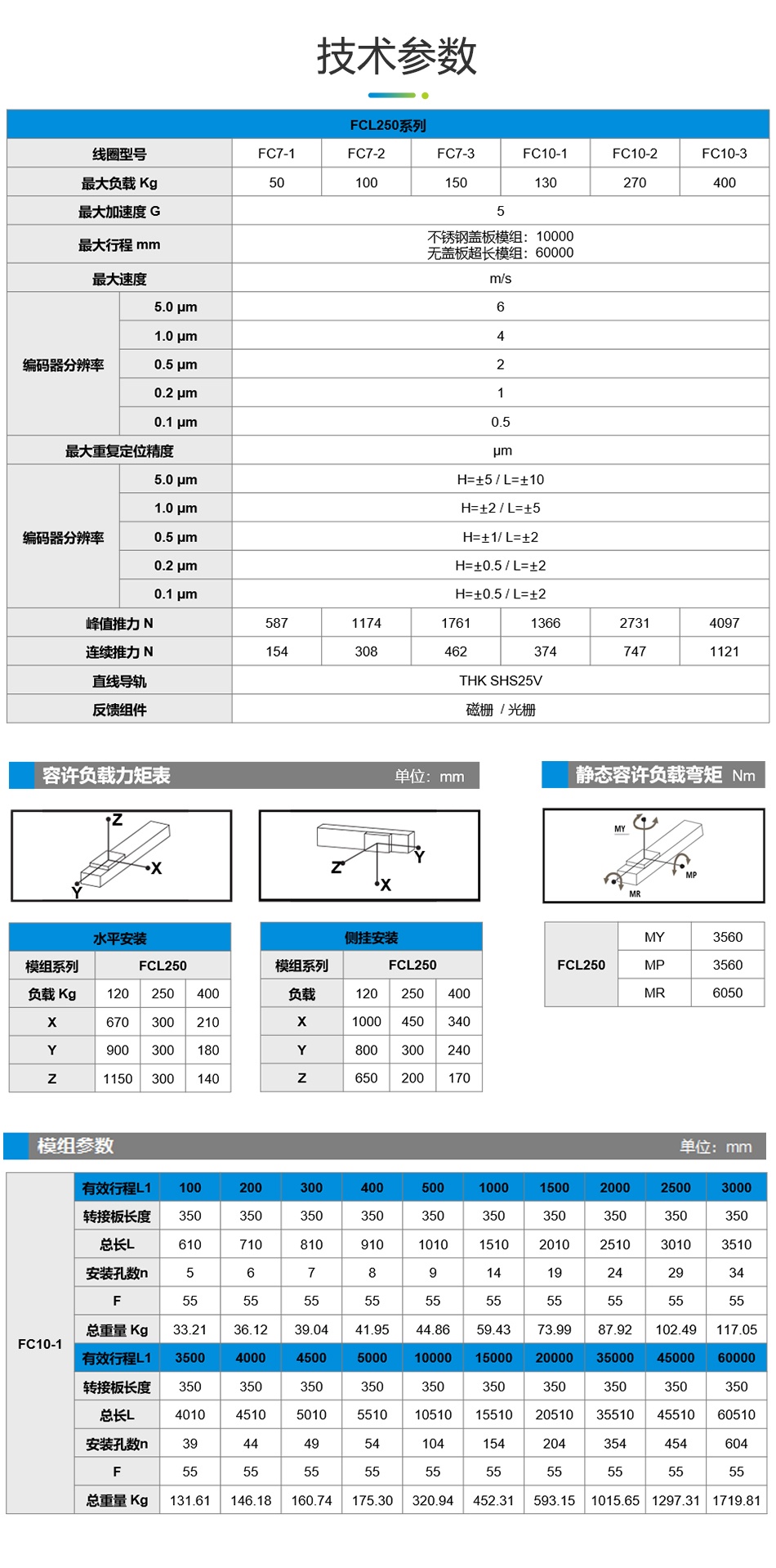 Faster Motion 飞创FCL系列直线电机模组采用高性能(Parker、Yaskawa、Mitsubishi)等高端品牌直线电机集成了传感器,高性能光栅或磁栅编码器,可直接实现直线运动。具有方案安全、其低摩擦、寿命长、易保养、维护成本低等优势,高性能的直线位移传感器确保行走路径精确、重复性能优越。